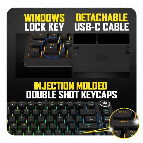 - TKL Form Factor:Â An 82-key “Tenkeyless” layout that removes the number pad to maximize desk space for mouse movement.