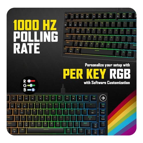 - Customizable RGB:Â Includes per-key customizable RGB lighting with over 16.8 million colors and various dynamic effects manageable via dedicated software.