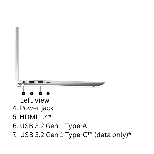 | Ports (Left Side) | Power jack HDMI 1.4* USB 3.2 Gen 1 Type-A USB 3.2 Gen 1 Type-C™ (Data Only) |