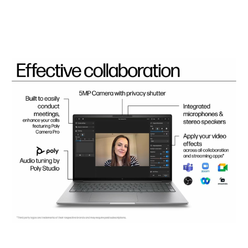 | Audio Details | Audio by Poly Studio, dual stereo speakers, HP World Facing Microphone dual array digital microphones, functions keys for volume up and down, combo microphone/headphone jack, HD audio |